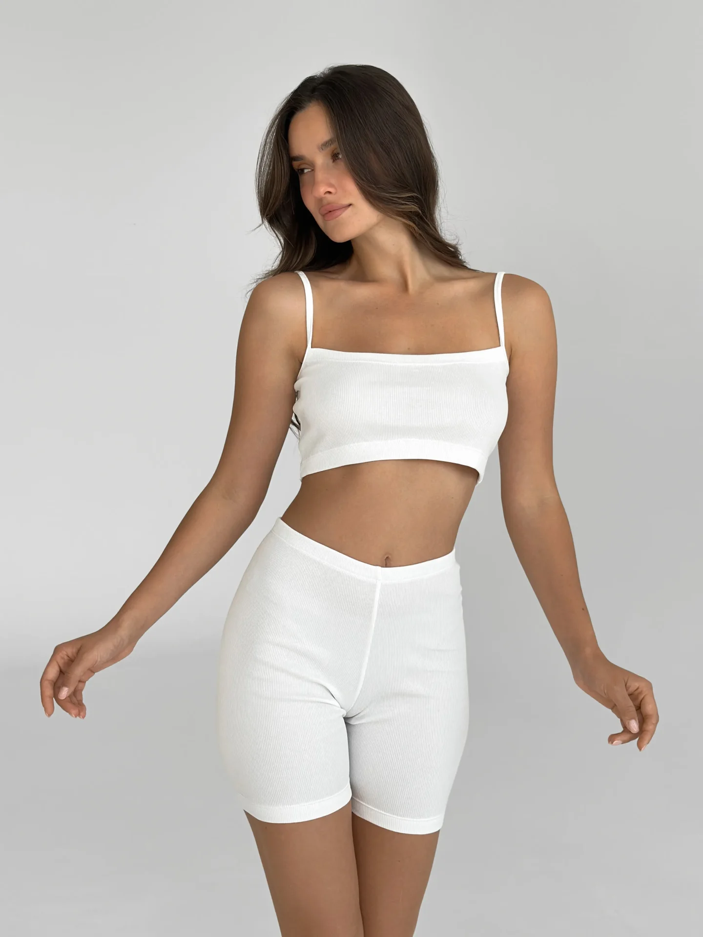 Top mini na ramiączkach, z dzianiny prążkowanej, mleczny