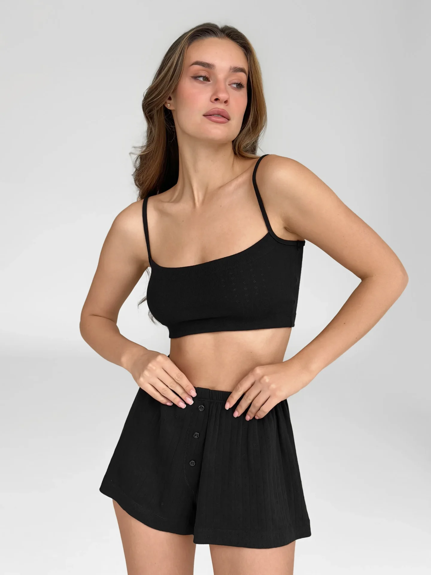 Top mini na ramiączkach, z ribany prążkowanej, czarny