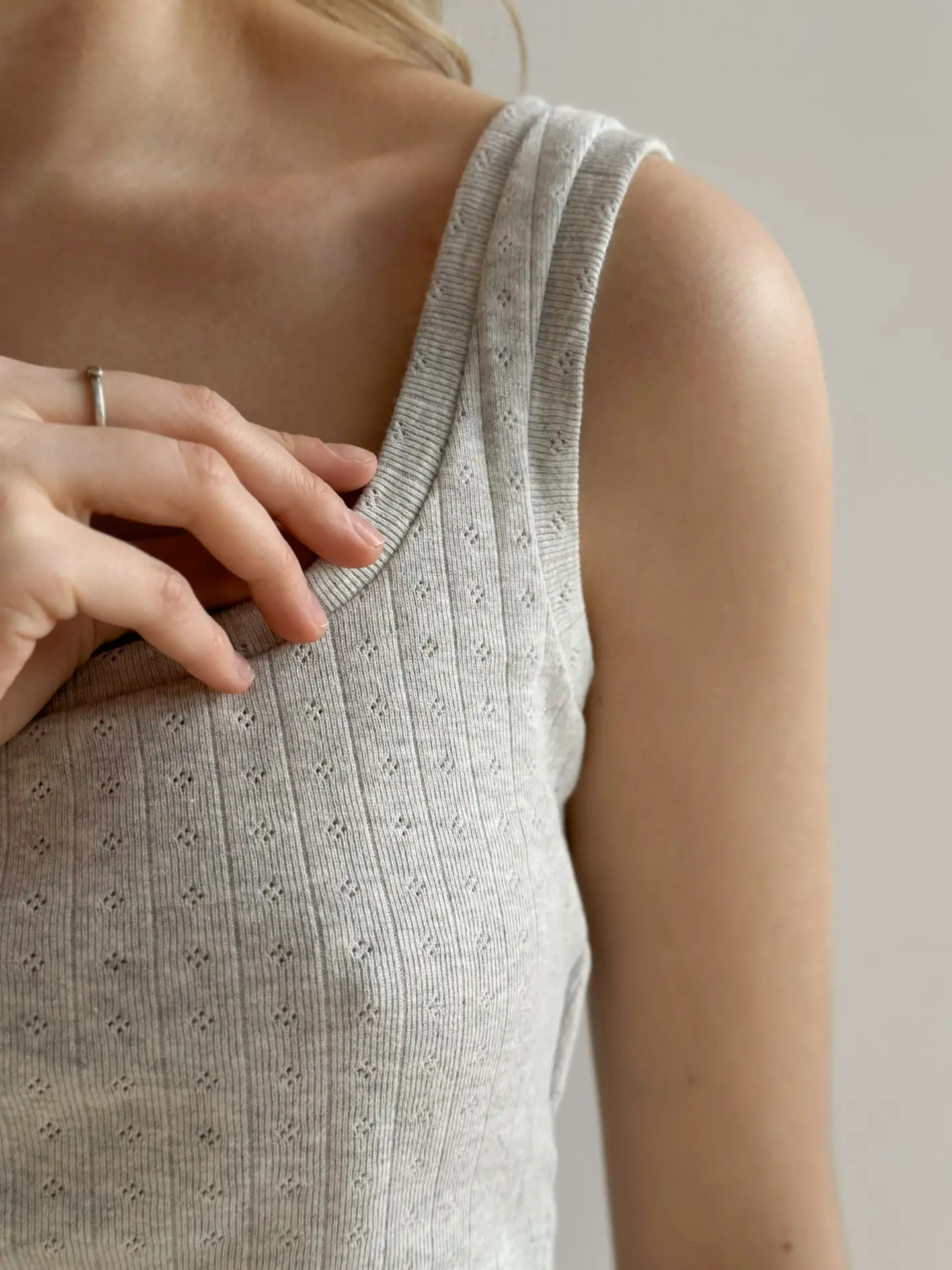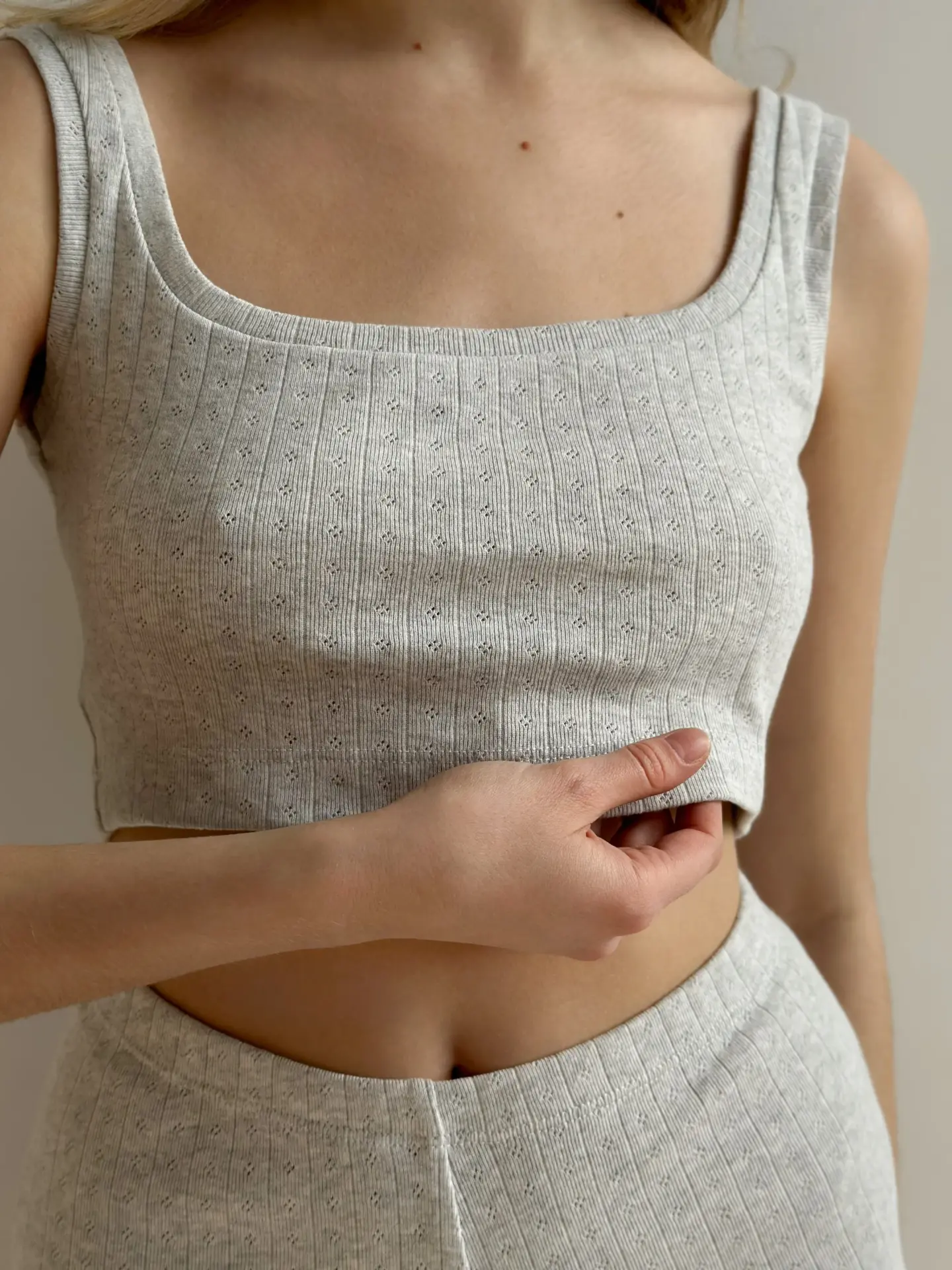 Top Ribana to stylowy i wygodny element garderoby. Wykonany z elastycznego materiału z delikatnym pionowym wzorem, zapewnia wygodę i dodaje elegancji. Idealnie nadaje się do codziennej garderoby, pasuje zarówno do domowych zestawów, jak i do codziennych stylizacji.