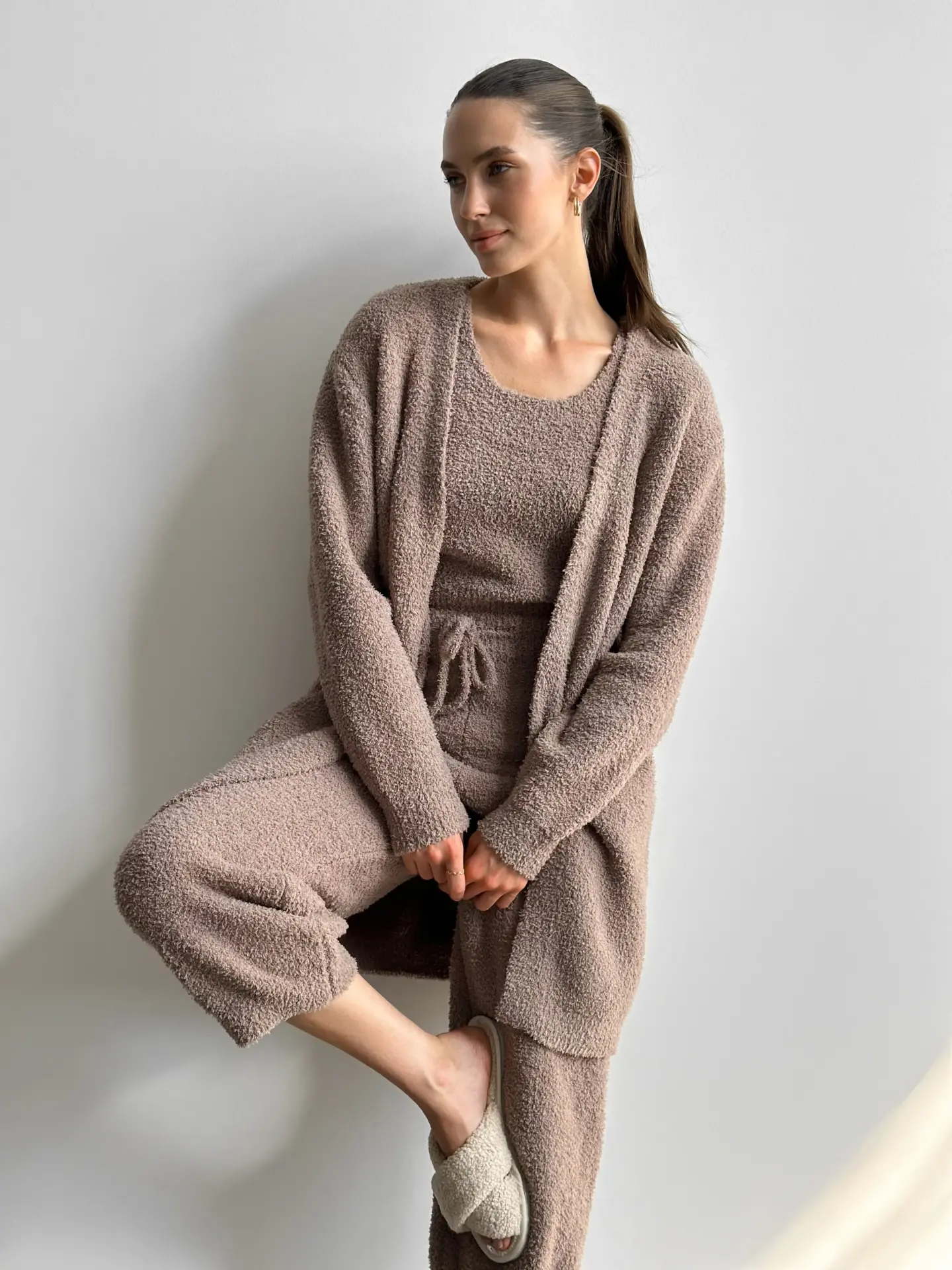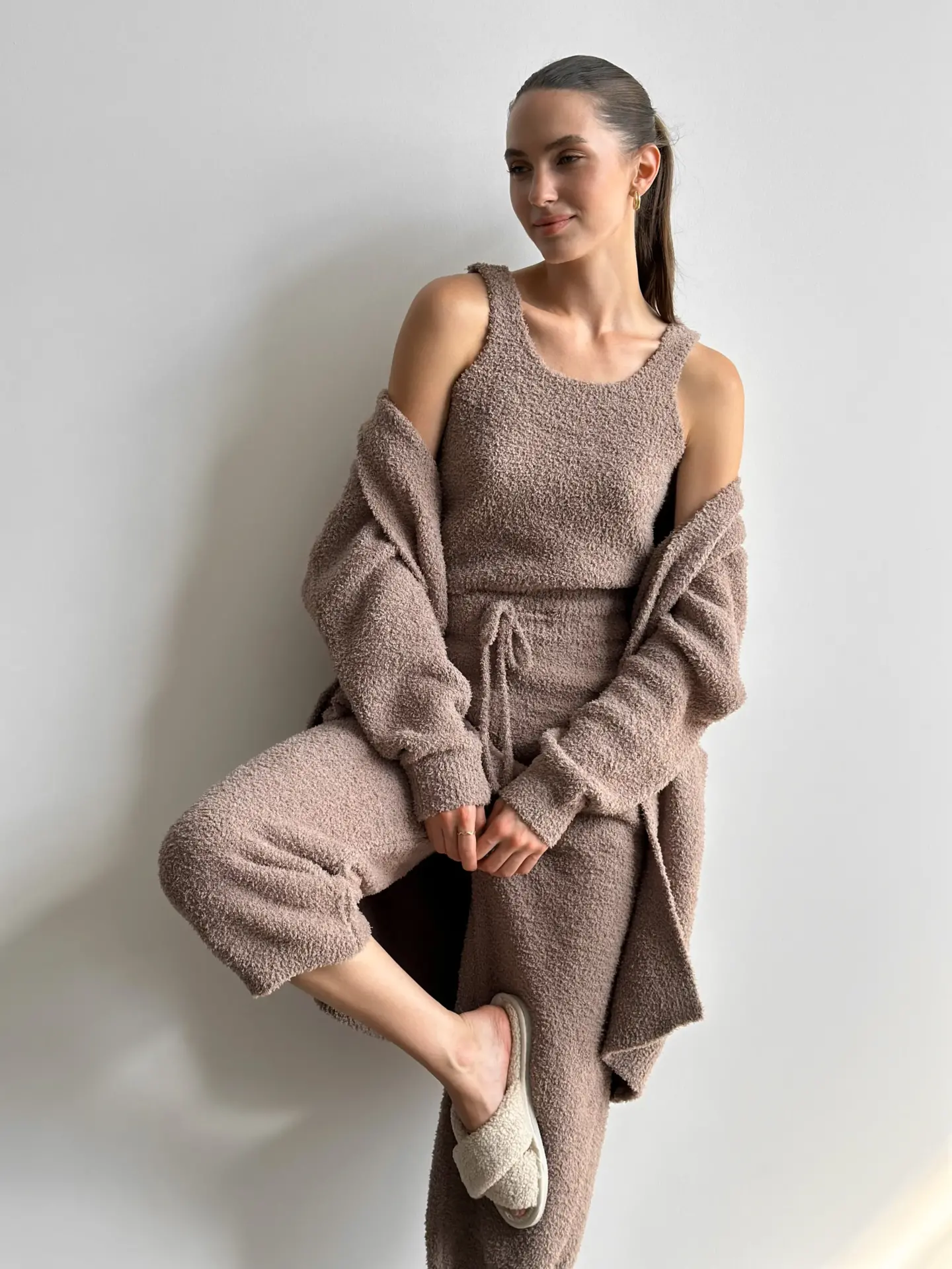 Top Soft z dzianiny puszystej, brązowy